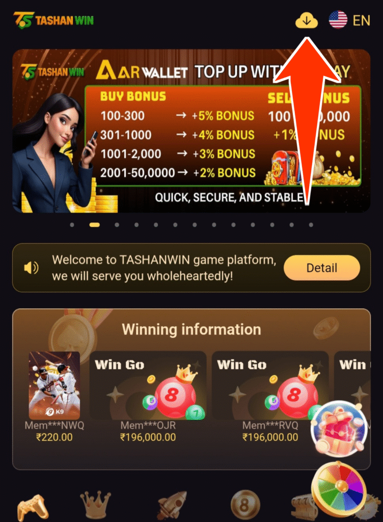 Tashan Win Apk Download is an smooth and simple process. First you have to register in tashan win apk, then you can start tashan win apk download. If not registered yet then click on the button given below to register
